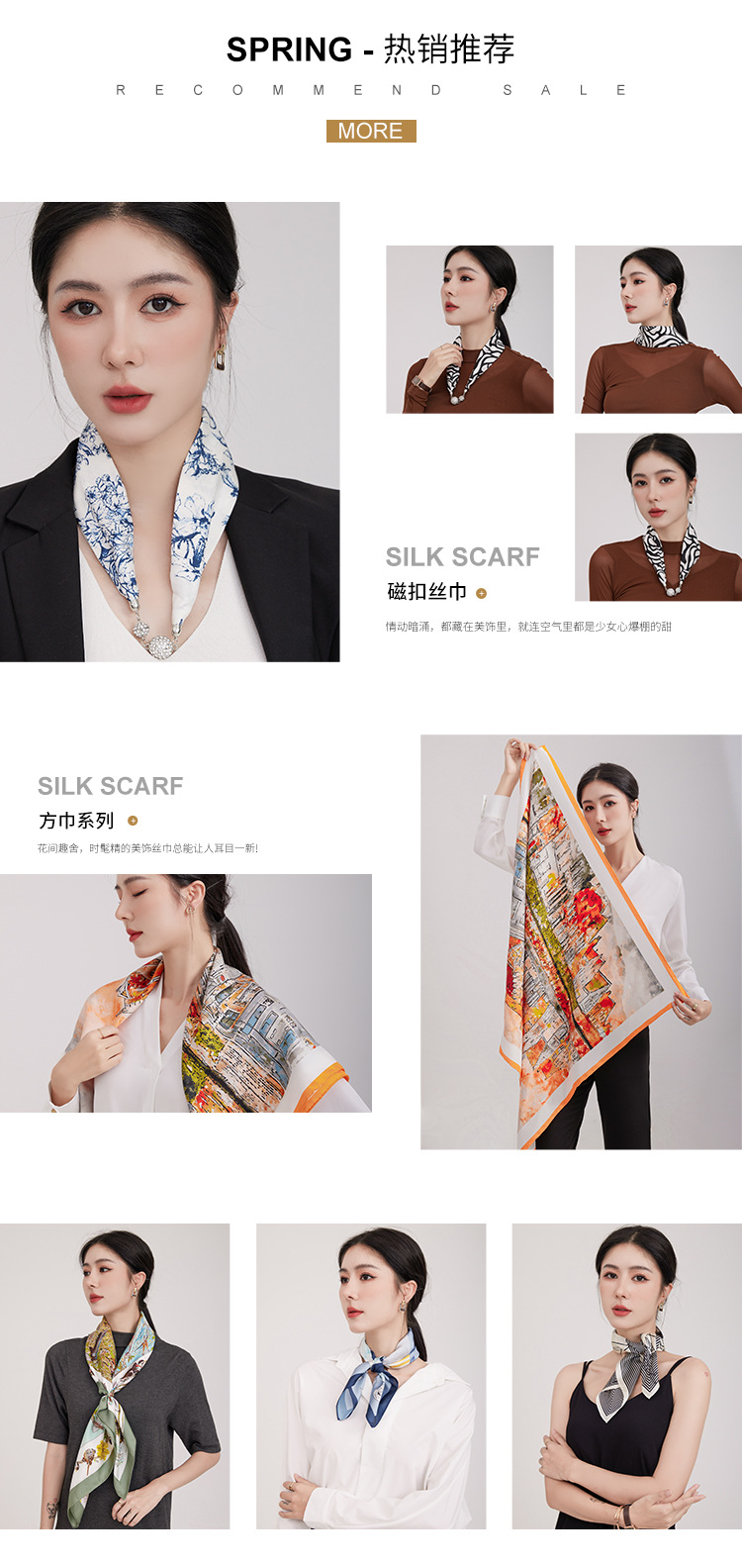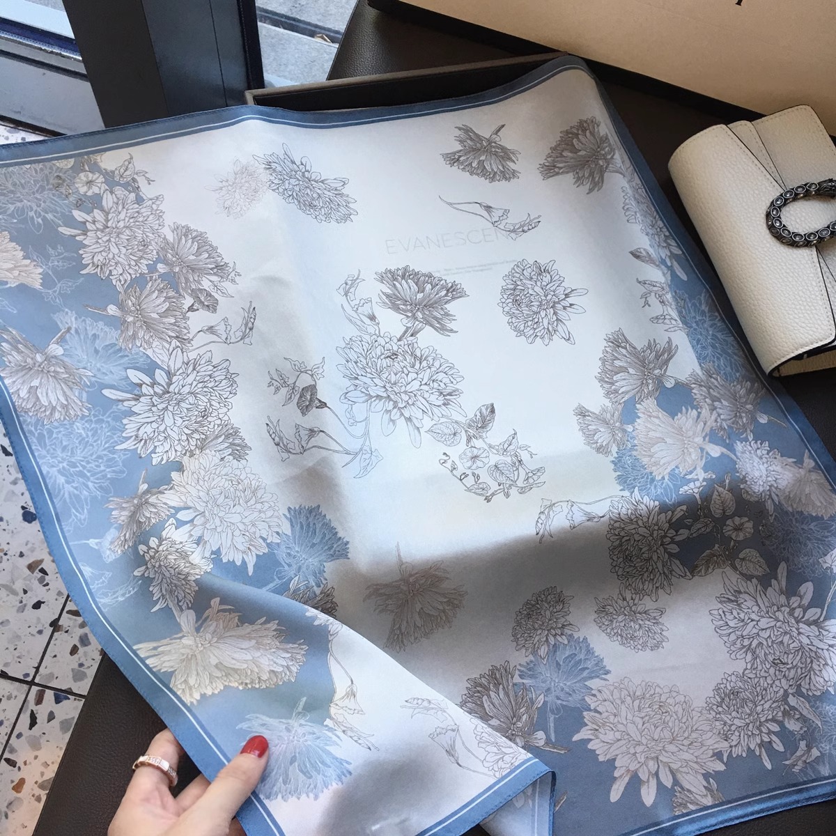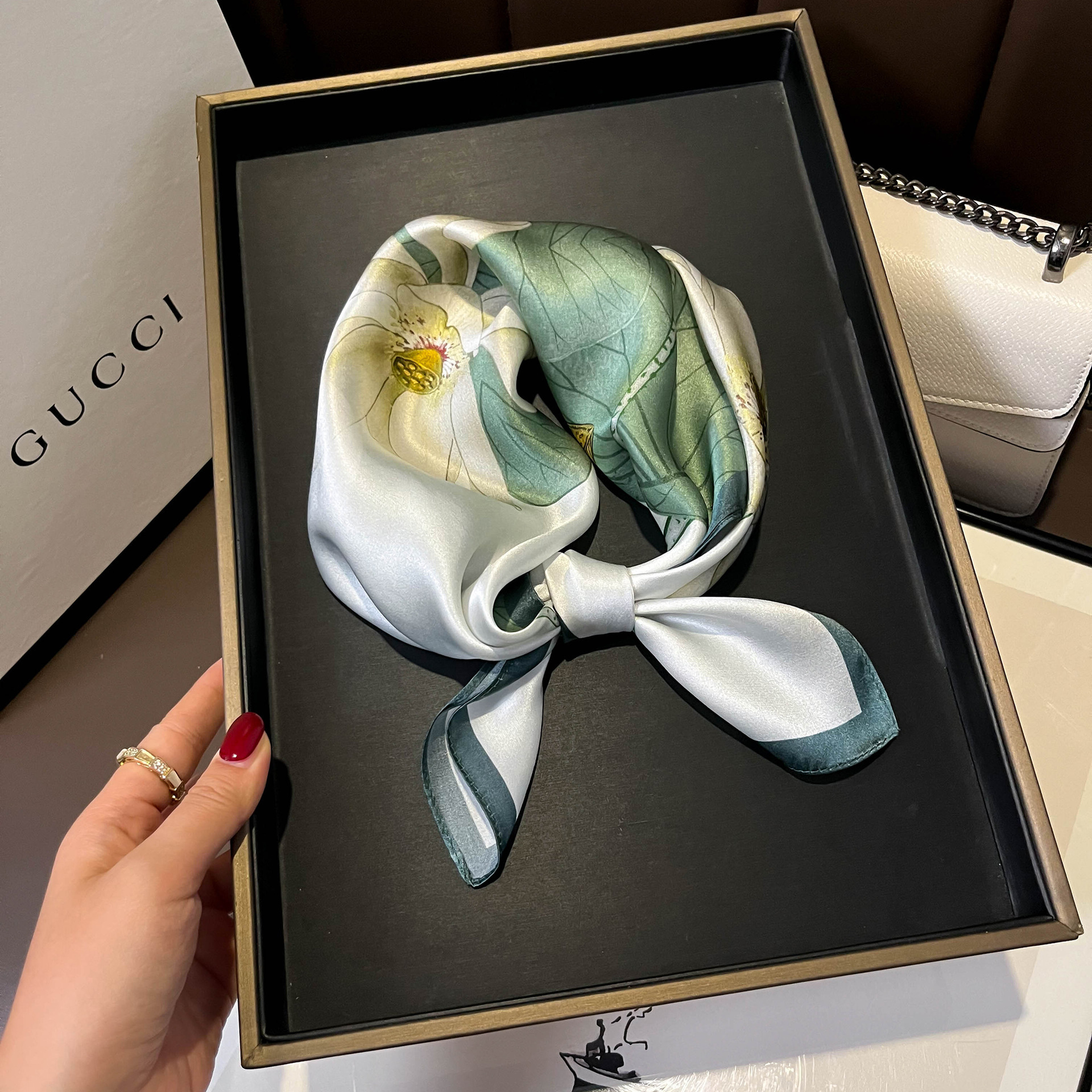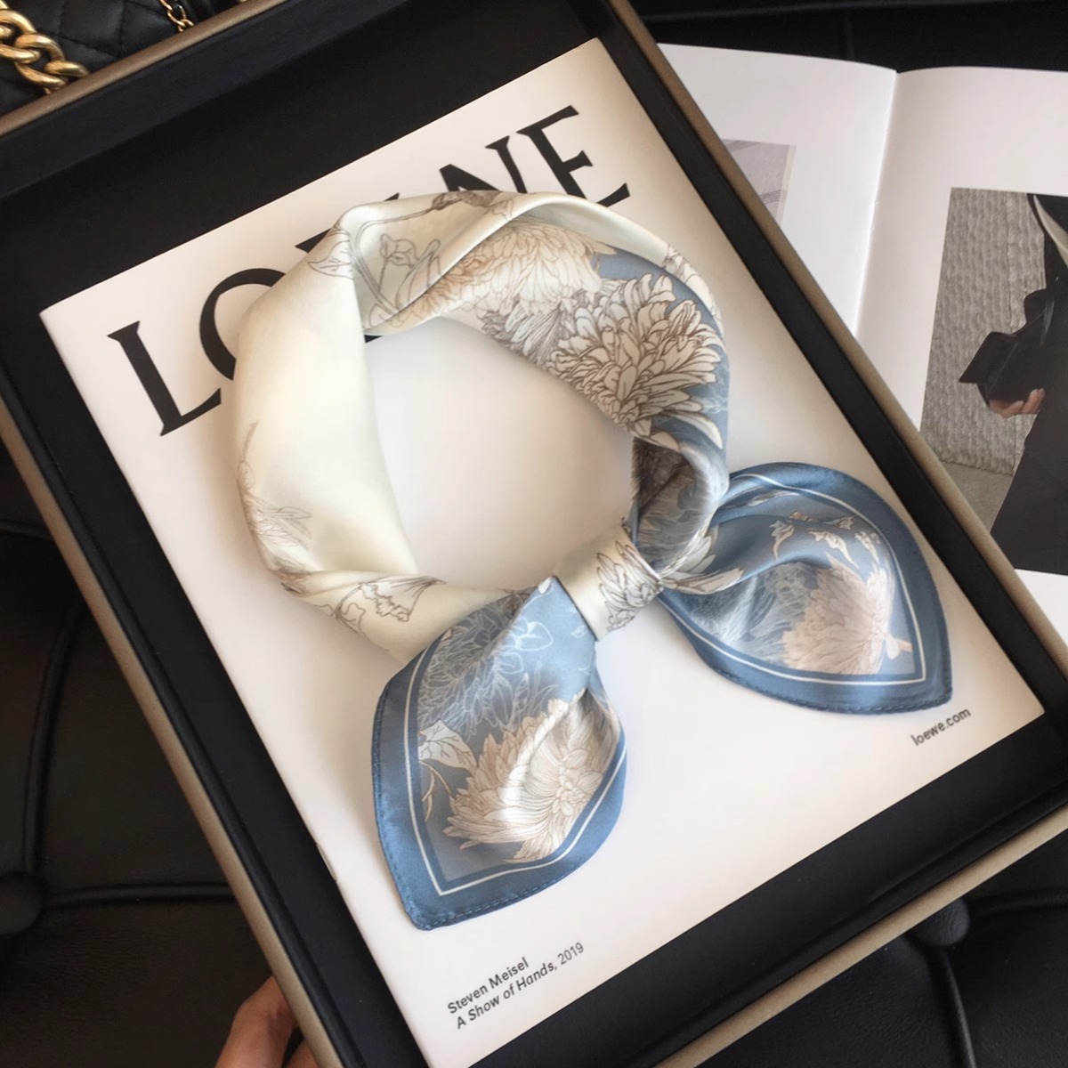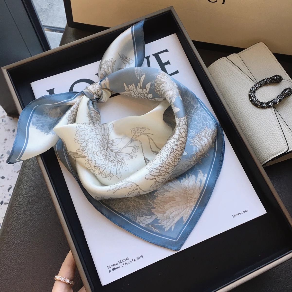 24 años nuevo 53 seda seda premium sensación pañuelo pequeño cuadrado moda multifuncional seda de morera al por mayor floral pañuelo de seda de lujo